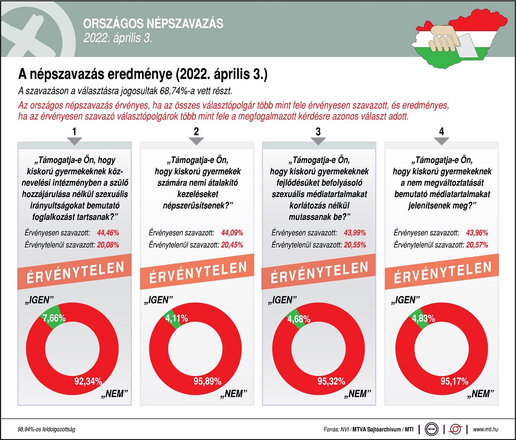 A kormány által kezdeményezett, a gyermekvédelmi kérdésekről rendezett országos népszavazás érvénytelennek bizonyult. Az országos népszavazás csak abban az esetben lett volna érvényes, ha az összes választópolgár több mint fele érvényesen szavazott, és eredményes, ha az érvényesen szavazó választópolgárok több mint fele a megfogalmazott kérdésre azonos választ adott.