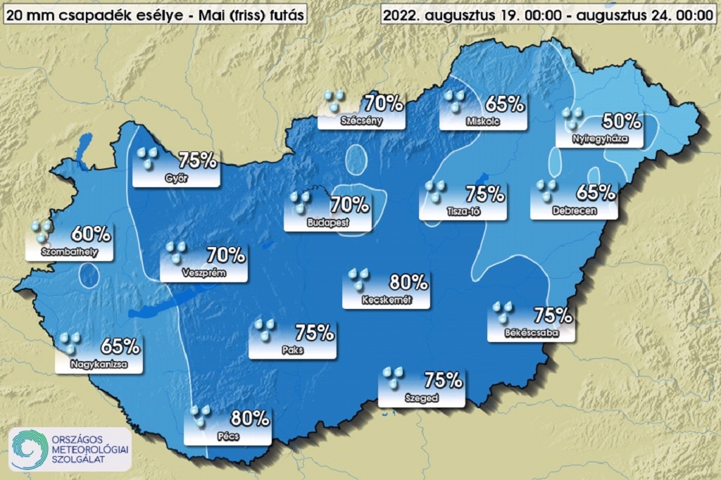 A meteorológiai előrejelzések alapján ismételten fel kell készülnünk arra, hogy augusztus 20-án bizony vihar zavarhatja meg az államalapítás ünnepét. Ugyanis a pénteken érkező hidegfront miatt már nagy százalékban valószínűsíthetjük a csapadékos hétvégét.