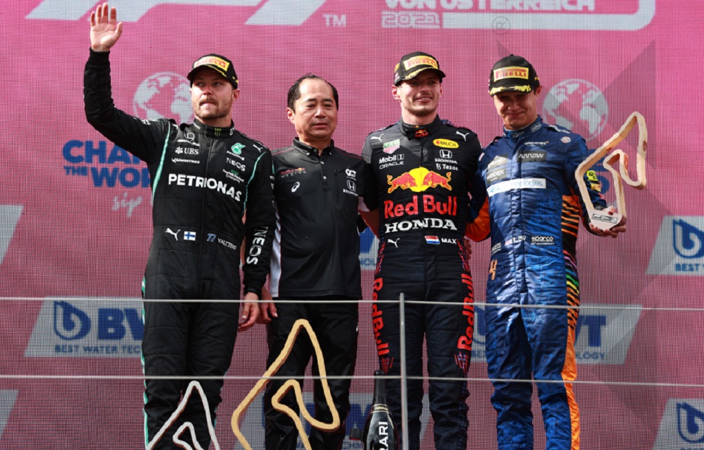 Végeredmény, Osztrák Nagydíj: 1. Max Verstappen (holland, Red Bull), 2. Valtteri Bottas (finn, Mercedes) 17.973 másodperc hátrány, 3. Lando Norris (brit, McLaren) 20.019 mp h., 4. Lewis Hamilton (brit, Mercedes) 46.452 mp h., 5. Carlos Sainz Jr. (spanyol, Ferrari) 57.144 mp h., 6. Sergio Pérez (mexikói, Red Bull) 57.915 mp h., 7. Daniel Ricciardo (ausztrál, McLaren) 1:00.395 perc h., 8. Charles Leclerc (monacói, Ferrari) 1:01.195 p h., 9. Pierre Gasly (francia, Alpha Tauri) 1:01.844 p h., 10. Fernando Alonso (spanyol, Alpine) 1 kör h.
