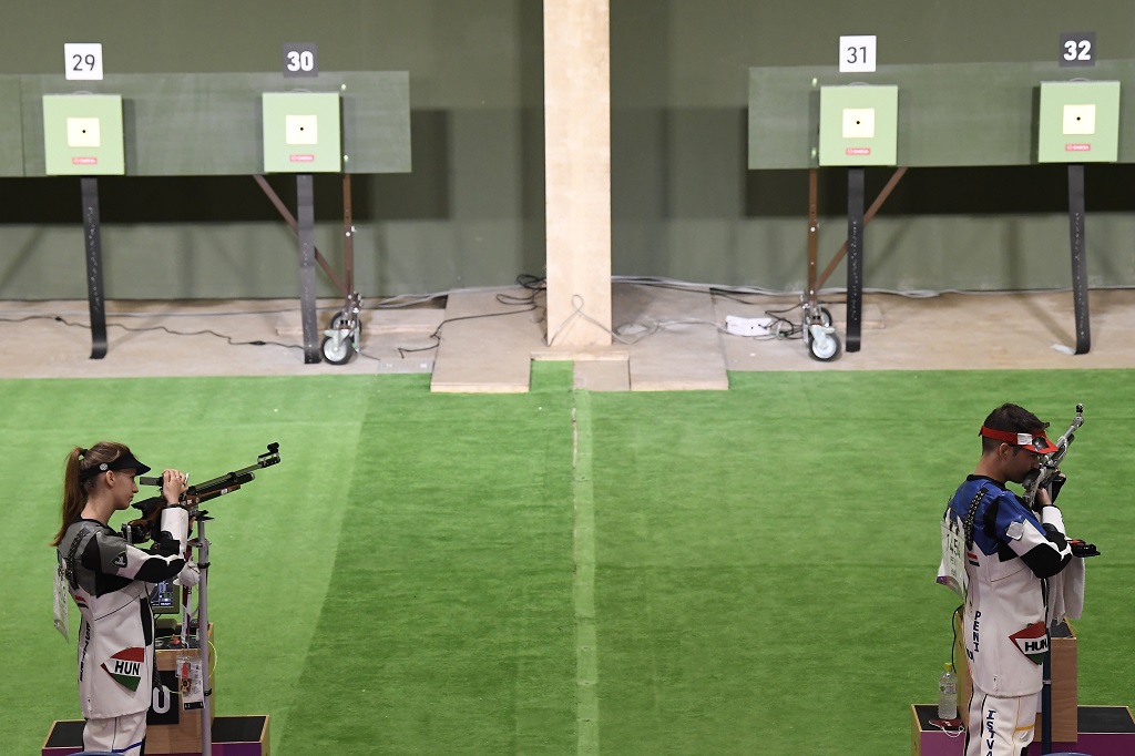 A hetedik helyen végzett a Mészáros Eszter, Péni István kettős a légpuskások vegyescsapat-versenyében Fotó: MTI/Kovács Tamás