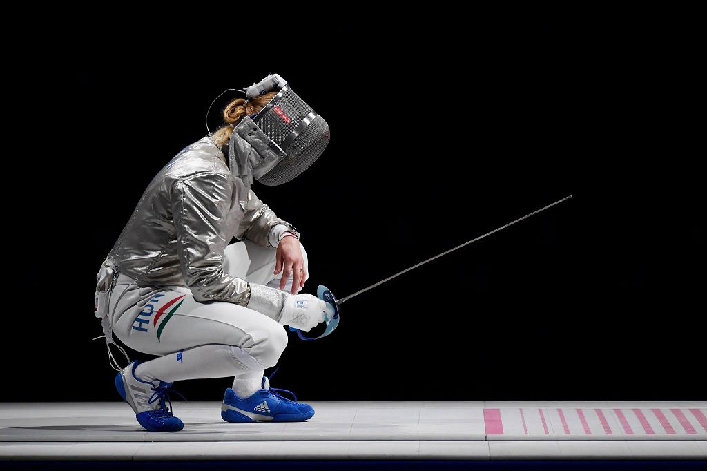 Az orvosok összedrótozták az egyéniben sérült térddel 4. helyet szerző Márton Annát, így vívni tud Fotó: Magyarock - Olympic Team Hungary/Szalmás Péter