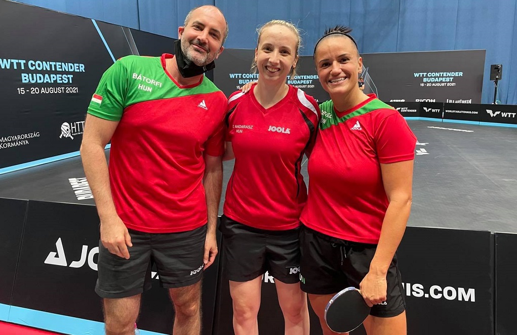Amikor még úgy tűnt minden rendben van Bátorfi (balra) és Pergel (jobbra) között: augusztus 20-án a játékos Madarász Dóra oldalán női párosban megnyerte a budapesti WTT-versenyt Fotó: Facebook/Magyar Asztalitenisz Szövetség