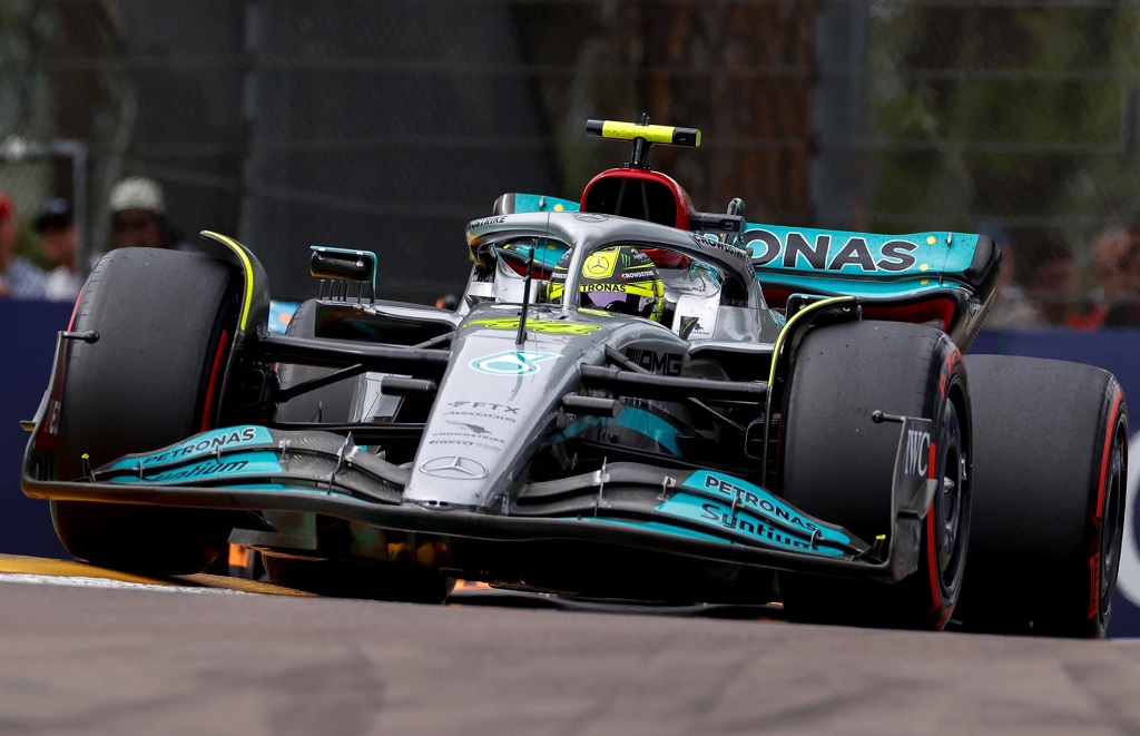 Csapattársa, George Russell viszont majdnem dobogós lett, ám végül a harmadik helyen a McLarennel versenyző Lando Norris zárt. Russell ezt a tavalyihoz képest sokkal gyengébb autót sokkal eredményesebben vezeti eddig, és négy futam alatt 21 ponttal szerzett többet, mint Hamilton.