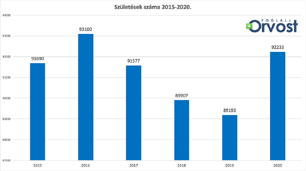 A FoglaljOrvost.hu statisztijájából kiderült, hogy a 2017 óta tartó csökkenő tendencia megállt a születésekben, a tavalyi évben 2019-hez viszonyítva 3%-kal több, 92,233 baba jött világra Magyarországon, Budapestet kivéve, ahol 4%-kal csökkent a születésszám a KSH adatai szerint. A magánszülések száma évről évre növekszik, a tavalyi év ebből a szempontból az eddigi legnagyobb elmozdulást mutatta, az évek óta sztenderd, országos 2%-os arány 2020-ban 3%-ra növekedett.