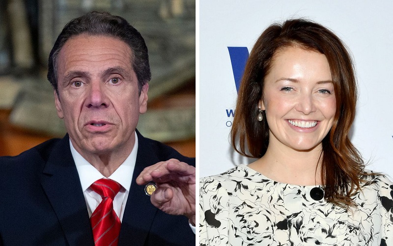 Balra a zaklatással vádolt Andrew Coumo, New York kormányzója, jobbra az egyik lehetséges áldozat, Lindsey Boylan Fotó: AP