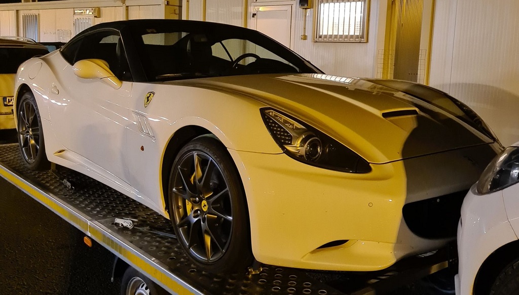 Nem mindennapi fogást csinált Csanádpalotánál a magyar rendőrség. Ugyanis az autópálya-határátkelőhelyen szerette volna elhagyni az országot egy román állampolgár, aki egy tréleren egy spanyol honosságú Ferrari F149 California típusú személygépkocsit szállított – tudta meg a police.hu.