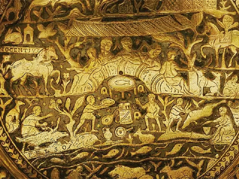 Az online látogatáson úgy járható be a kiállítás területe, mintha a látogató valóban jelen lenne, emellett pedig bemutatófilmek és szöveges információk is segítik a műkincsek és az azokon szereplő ábrázolások mitológiai hátterének megismerését - közölte az MTI-vel a Nemzeti Múzeum. Néhány leletet olyan aprólékosan és nagy felbontásban digitalizáltak, hogy a 3D technológiának köszönhetően az ünnepi lakomakészlet darabjai szinte kézbe vehetők, így a késő római kori, IV-V. századból származó ezüst- és réztálak mintázatain és figuráin az ötvösmunka finom részletei is kirajzolódnak.