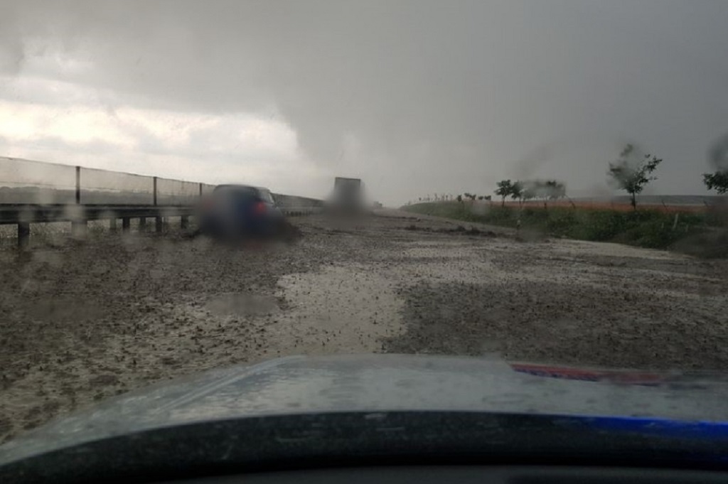 A hirtelen lezúduló csapadék miatt víz és sárátfolyás alakult ki, az autóutat mindkét oldalon lezárták.