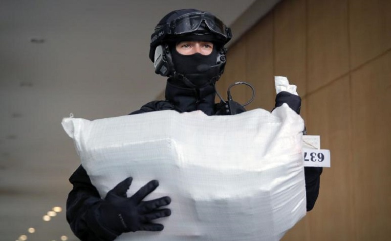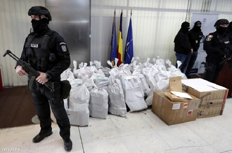 A mostani akció során, amely egy kábítószer-, különösen kokainkereskedelemmel foglalkozó szervezett bűnözői csoport felszámolását célozta, egyebek mellett 17 tonna kokaint is lefoglaltak Belgiumban, melynek értéke több milliárd euró Fotó: MTI/EPA