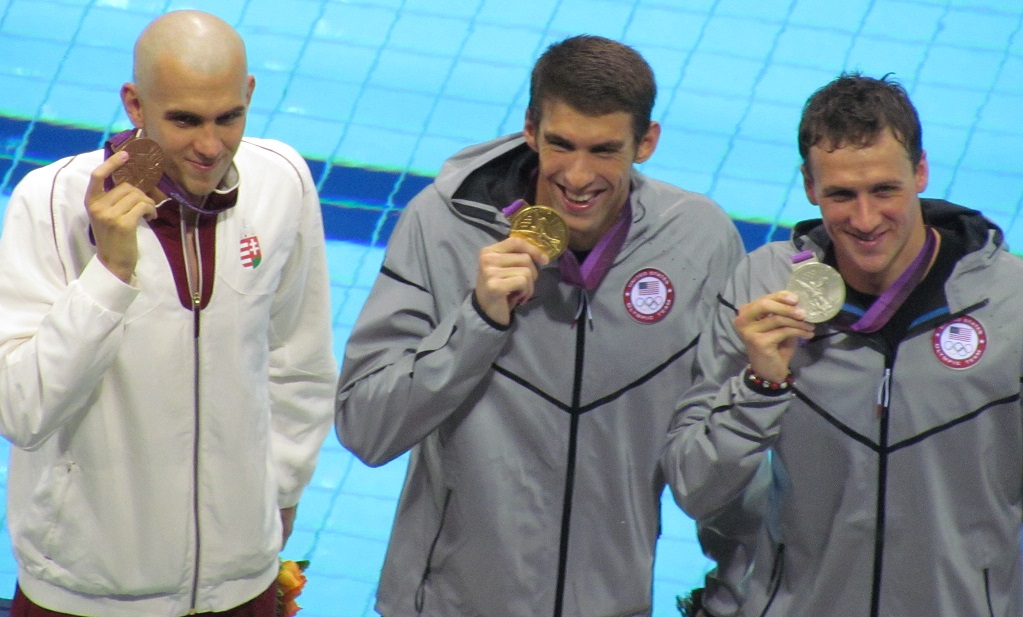 A 2012-es londoni olimpián bronzérmet szerzett Cseh László Michael Phelps és Ryan Lochte mögött 200 méter vegyesen Fotó: wikipedia