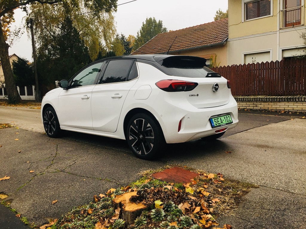 Sok autógyártónál szinte alapszabály, hogy valami ronda, de legalább furcsa kocsival akarják hangsúlyozni az elektromobilitást. A PSA konszernél szerencsére nem így van, a meglévő modelleket villanyosítják. Így született az Opel Corsa-e is. Szinte alig valamiben különbözik ez a kocsi a robbanómotoros Corsáktól. Az oldalán és hátán elhelyezett „e” betűkről, a kipufogók hiányáról, az áramvonalasabb felniről, de leginkább itthon a zöld rendszámról derül ki, hogy milyen a villanyos Corsa.