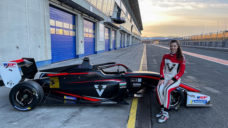 Vivien az első magyar autóversenyzőnő a sorozatban, és az április 30-án rendezendő F1-es Portugál Nagydíj betétfutamán mutatkozik be új csapatában Fotó: Team Motopark