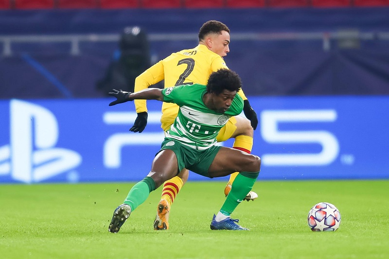 Frimpong vezette Fradi-védelem az első 30 percben nem bírt a Braitwhaite-tel és társaival Fotó: fradi.hu