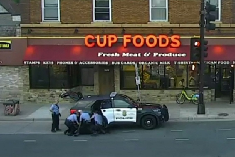A korábban többszörösen büntetett George Floyd hamis pénzzel akart fizetni egy boltban, a pénztáros kihívta a rendőröket. Az afroamerikai férfi beszállt az autójába, zavartan viselkedett, majd megpróbált ellenállni a rendőri intézkedésnek, amelynek hatására térdelt a nyakára Derek Chauvin Forrás: Reuters