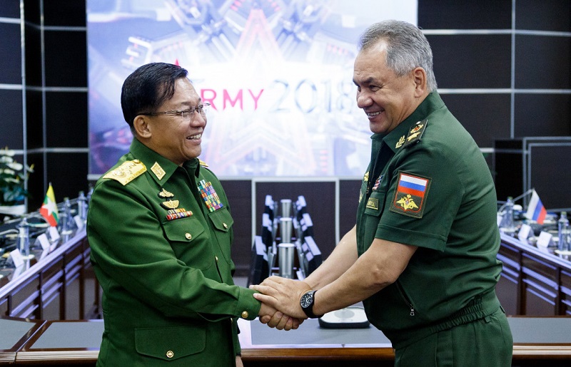A hatalom ezentúl Min Aung Hlaing, a hadsereg első számú vezetője (balra) kezében összpontosul majd Fotó: TASSZ