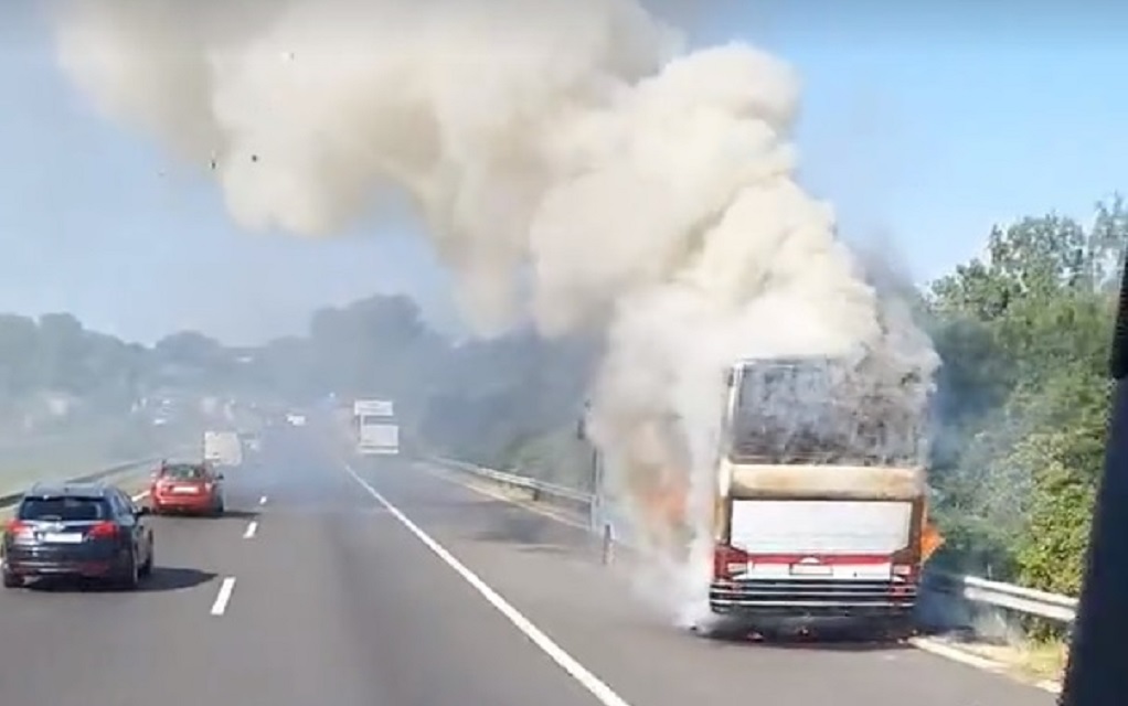Lángra kapott egy távolsági busz az M7-es autópálya 18-as kilométere közelében, az érdi lehajtónál, a Balaton felé vezető oldalon csütörtök délben. A katasztrofavedelem.hu megírta, az utasok időben le tudtak szállni az égő járműről.