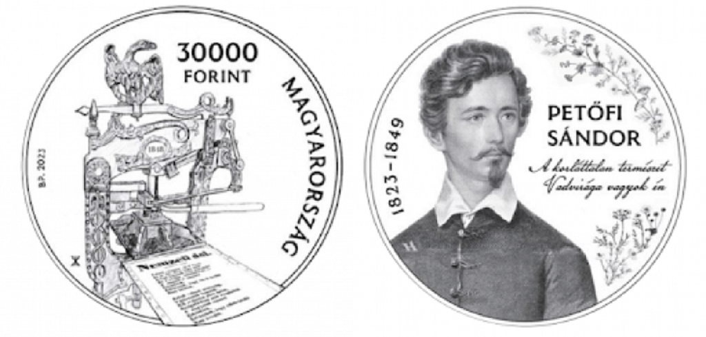 Az év első emlékérméje, a magyar kultúra napján, január 23-án érkezik, és Kölcsey Ferenc és az 1823. január 23-án keletkezett Himnusz előtt tiszteleg. Az ezüst változat 15 ezer, a színesfém verzió 3 ezer forintos névértéken kerül forgalomba. A Petőfi-érmék április 11-én, a magyar költészet napján vásárolhatók meg először. Az ezüstérme 30 ezer forintos, a színesfém változat 7500 forintos értékű lesz.