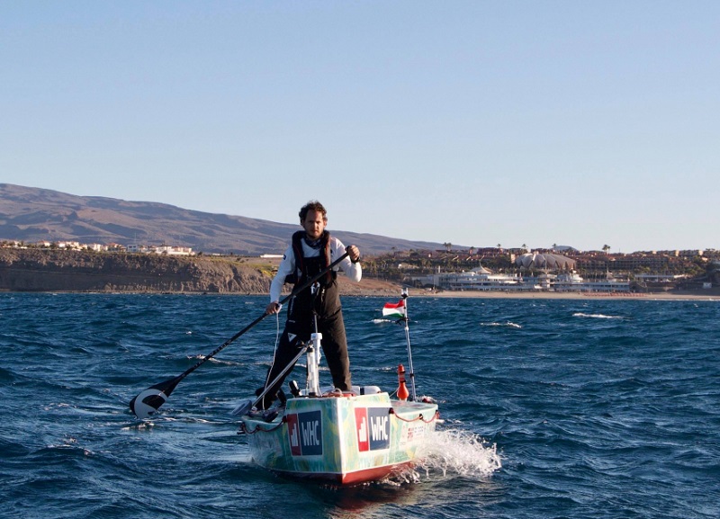Megint nem sikerült. Rakonczay Gábor hat nappal ezelőtt már másodszor vágott neki egy maga tervezte és építette, 5,5 x 1,5 méteres, merev testű szörfdeszkával, hogy a Kanári-szigetekről indulva átevezze az Atlanti-óceánt. Az extrémsportoló szinte teljesen átfagyott, így maga döntött a befejezés mellett. Rakonczay végül egy mentőhelikopter segítségével visszatért a szárazföldre.