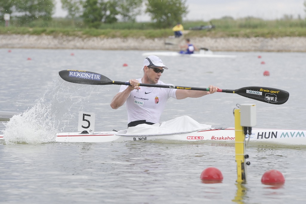 Az 5000 méteres döntőben a férfi kajakosok versenye kettős hazai sikerrel zárult, az első helyet Noé Bálint szerezte meg Fotó: MTI/Koszticsák Szilárd