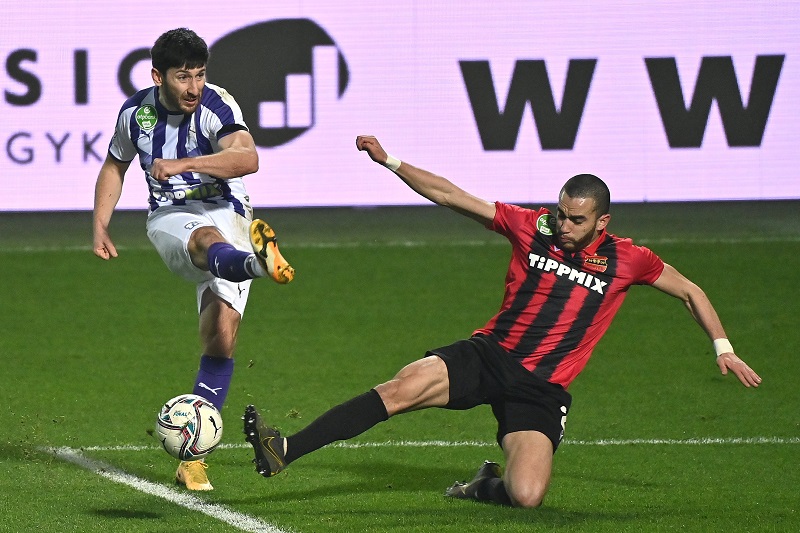 Az Újpest legyőzte a Honvédot, így a tabellán is elé került a tabellán a kiesés ellen folytatott csatában Fotó: MTI/Illyés Tibor