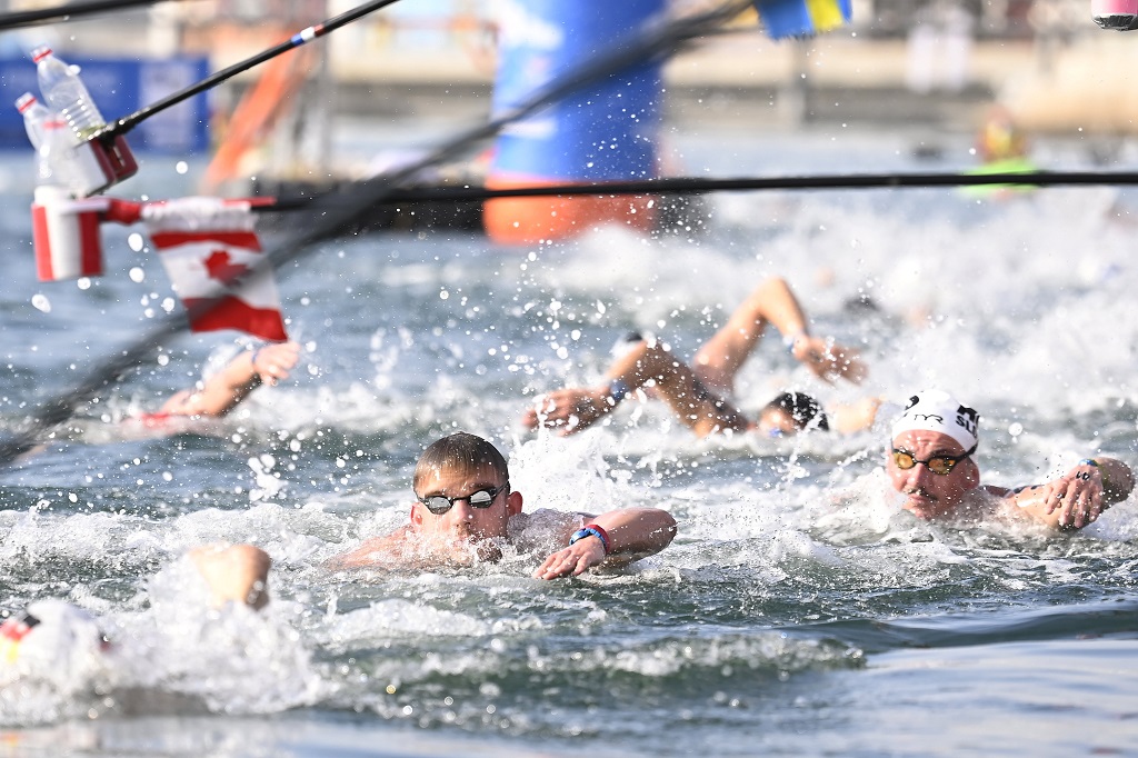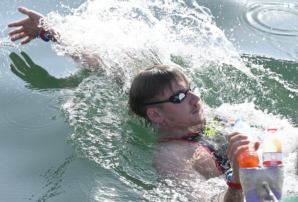 Az olimpiai ezüstérmes, világ-, és Európa-bajnok nyíltvízi úszónk - középen - megnyerte a 2021-es Világkupa-sorozatot     Fotó: MTI/Kovács Tamás