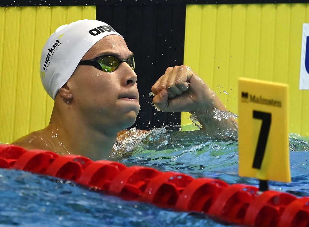 A győriek 25 éves, szerb származású versenyzője 23.00 másodperces idővel hatalmas meglepetésre diadalmaskodott a Duna Arénában Fotó: MTI/Kovács Tamás